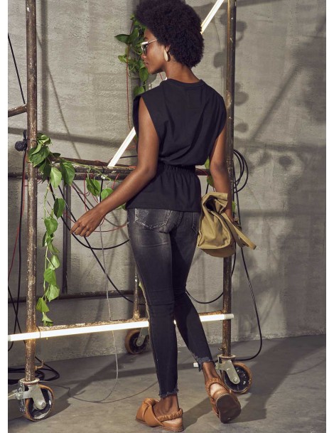 Añadir deseos Vista rápida Vaquero push-up con cinturón 99,95 € Vaqueros pitillo de tiro alto de efecto desgastado con rotos en ambas piernas. Cinturón en tono verde militar con texto impreso que dice "Amantes...