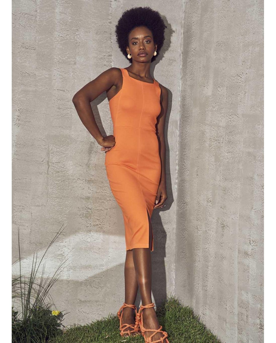 VESTIDO MIDI CEÑIDO SIN MANGAS